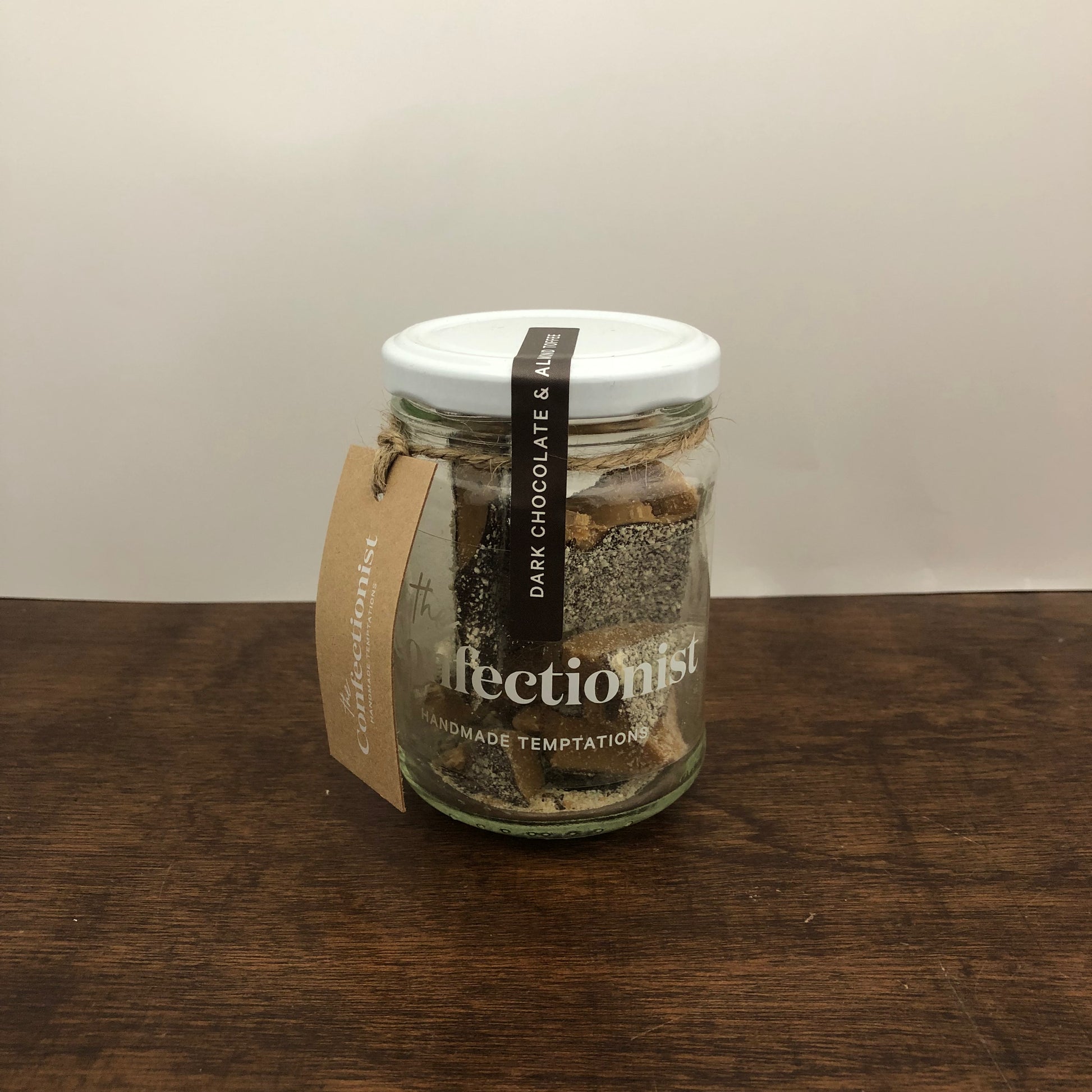 Handcrafted Almond Toffee using roasted almonds, covered in a generous layer of dark chocolate and sprinkled with ground almonds made by the Confectionist in Auckland.
